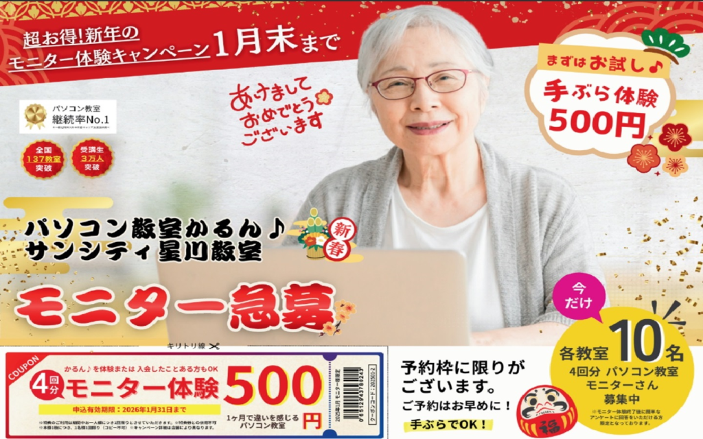 パソコン教室かるん♪サンシティ星川教室新着!!
