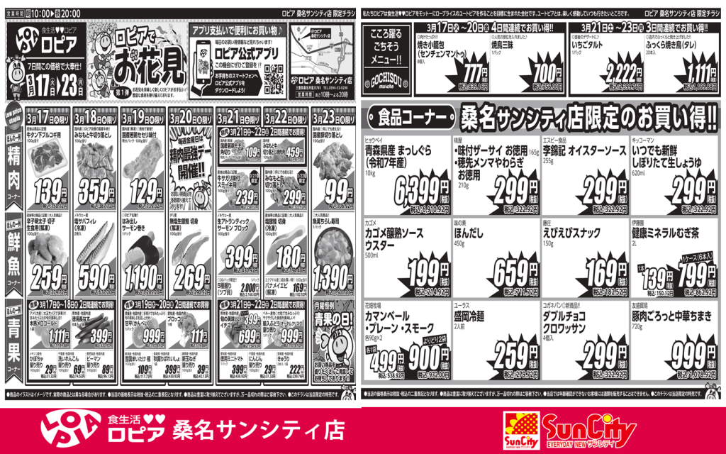 ロピア桑名サンシティ店3月17日~3月23日ロピアでお花見皆様のご来店お待ちしております♡♡ 詳しくはInstagram@lopia.kuwanasuncity_officialロピア桑名サンシティ店電話0594-33-0298